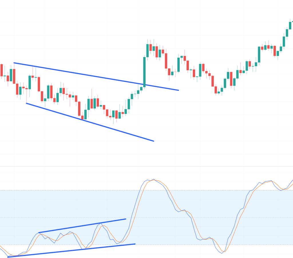 Umgekehrt können Trader eine Long-Position eingehen, wenn der Preis eines Basiswerts fällt, während der stochastische Indikator steigt.
